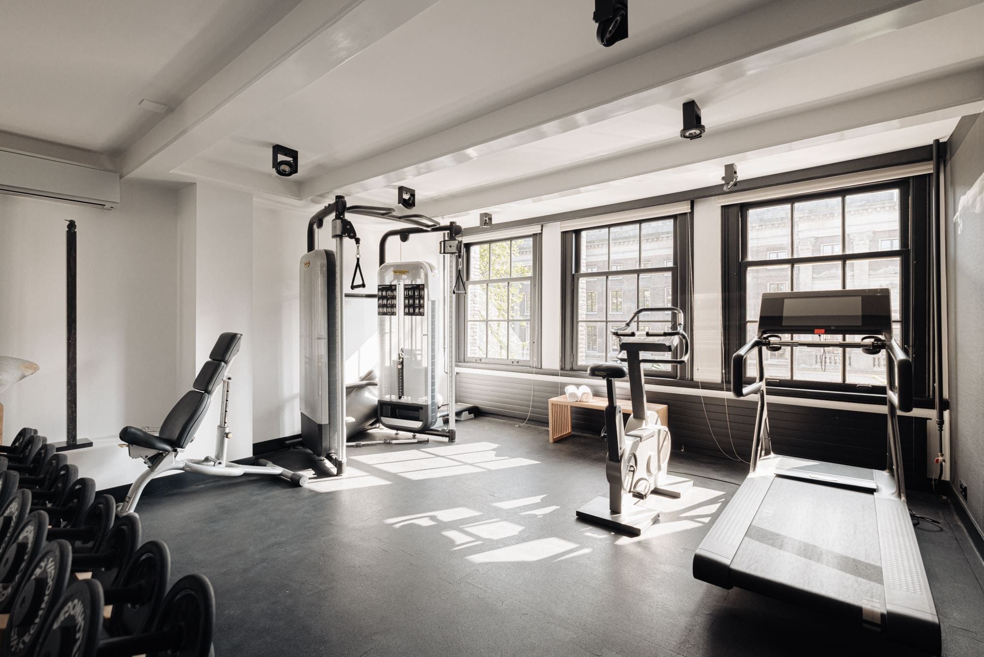 Dan pakken we de lift om aan te komen bij de tweede etage, welke momenteel in gebruik is als thuisgym. De derde etage heeft een eigen ruime woonkamer aan de voorzijde met een ruime slaapkamer aan de achterzijde, een keuken en een ruime badkamer, terwijl de hoogte, vierde etage bestaat uit twee studio-appartementen, compleet met kitchenette, badkamer en slaapkamer.