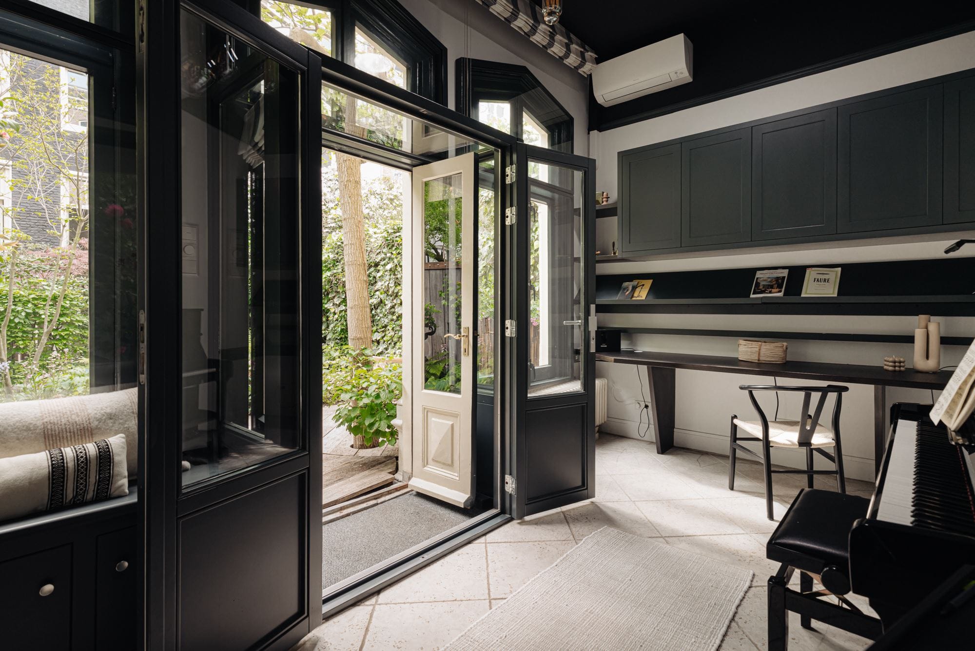 Toe aan rust? Trek u dan terug in de woonkamer aan de achterzijde. Deze kamer heeft openslaande deuren naar de groene achtertuin met verwarmd tuinhuis. Rust kunt u overigens ook vinden het souterrain of de zolder, waar de yoga-matjes klaarliggen.