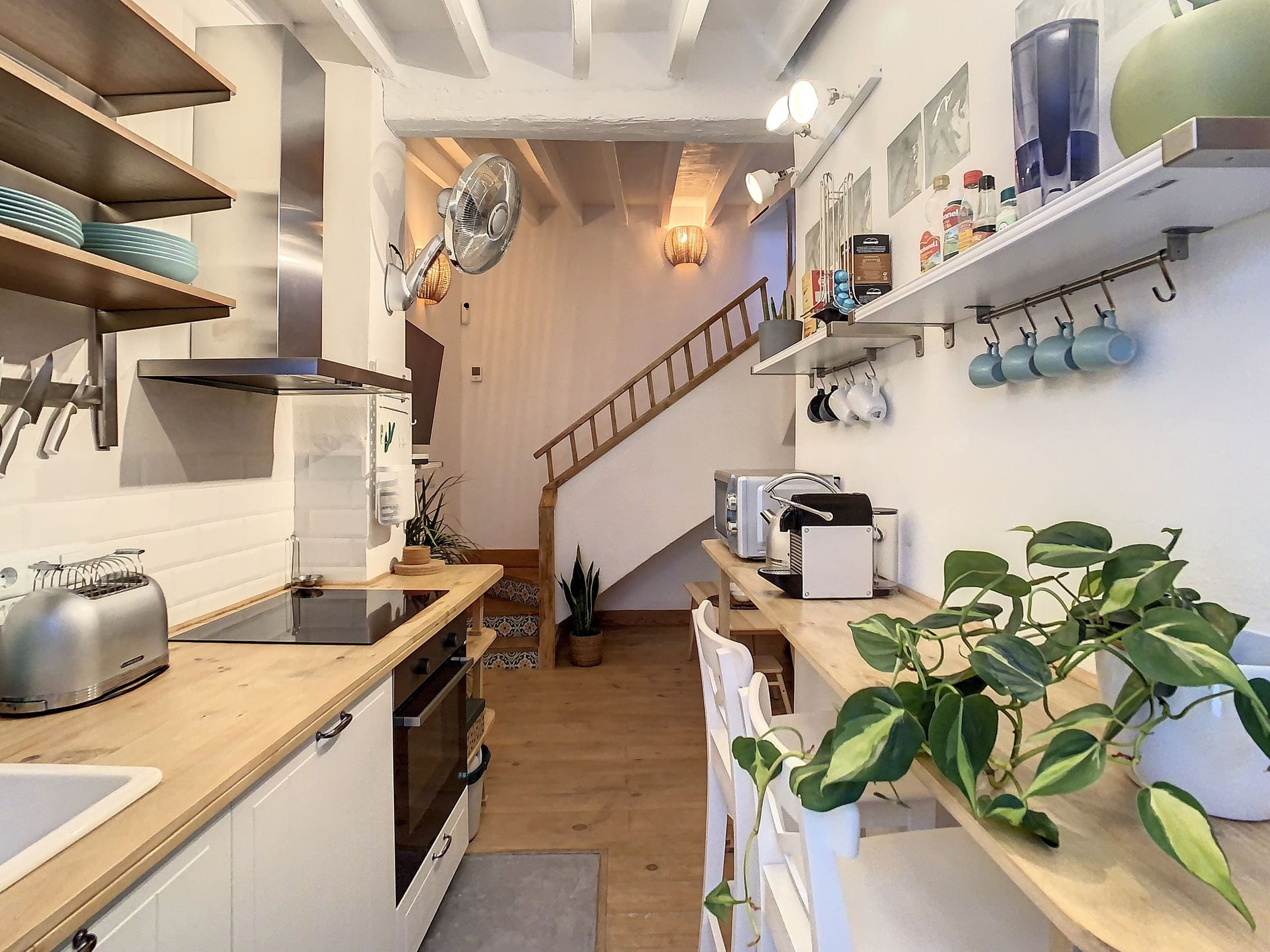 Hoewel het huisje met 36 m² aan woonoppervlak relatief klein is, heeft het alles wat uw hartje begeert. Te beginnen met de knusse woonkeuken, voorzien van inbouwapparatuur en een zitruimte met plaats voor een bank, salontafel en televisie.