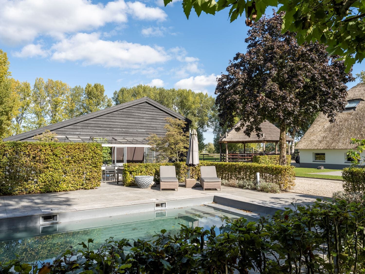 Tot slot moeten we het nog even hebben over de omgeving. genesteld tussen de weilanden en “grote monumentale bomen”, heeft het domein een gigantische, onder architectuur aangelegde tuin met terrassen, een verwarmd buitenzwembad en een jacuzzi. Interesse? De advertentie op Funda staat al langer dan een half jaar live en prijkt met een vraagprijs van € 3.900.000.